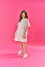 Este deslumbrante vestido com tule arco-íris é a escolha perfeita para tornar sua princesa ainda mais encantadora e especial. Com um design que une suavidade e brilho, é ideal para ocasiões festivas e momentos inesquecíveis. Composição: Forro: 100% algodão. sobreposição: 100% poliéster. Ref:12061