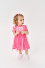 Um vestido rosa confete para bebê menina é realmente encantador e festivo. Para garantir que o vestido tenha um visual harmonioso, visual encantador, festivo e confortável, ideal para ocasiões especiais. Composição: Sobreposição: 100% poliéster. Vestido: 90% poliéster e 10% elastano. Ref: 10264
