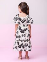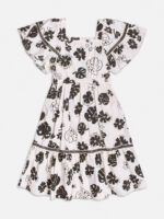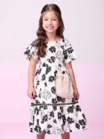 Este vestido com estampa de folhagens em preto e branco é uma combinação perfeita de elegância e conforto. O toque clássico é realçado pelas mangas amplas e pela cintura com elástico embutido, que garantem um ajuste perfeito ao corpo. A saia maria com renda sobreposta traz um detalhe delicado e feminino, tornando o vestido uma escolha ideal para o verão, seja para um passeio casual ou um evento especial. Composição: 100% Algodão. Ref.: H5596