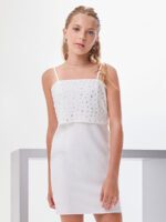 Esse vestido com strass e tule branco é uma escolha versátil e confortável, perfeito para várias ocasiões! O tule adiciona um toque de leveza e charme, enquanto os detalhes em strass trazem um brilho sutil que eleva o visual. Com um design que prioriza o conforto, esse vestido é ideal para eventos mais formais. Combine com sandálias ou sapatilhas para um look mais leve, ou com saltos para uma ocasião especial. Uma peça que combina estilo e praticidade!