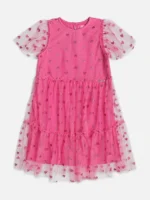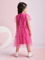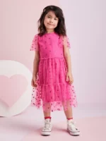 Adicione um toque de charme aos momentos especiais com o Vestido Pink Infantil. Este encantador vestido é confeccionado com tule, apresentando uma estampa delicada de corações, enquanto o forro em meia malha proporciona leveza e conforto para a criança. O detalhe da barra com babado adiciona um encanto extra ao visual, complementado pela plaquinha de metal na cintura, que destaca a marca com elegância.