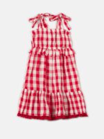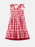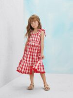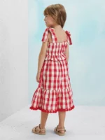 Este encantador vestido midi xadrez em vermelho e branco é a escolha perfeita para momentos especiais.
